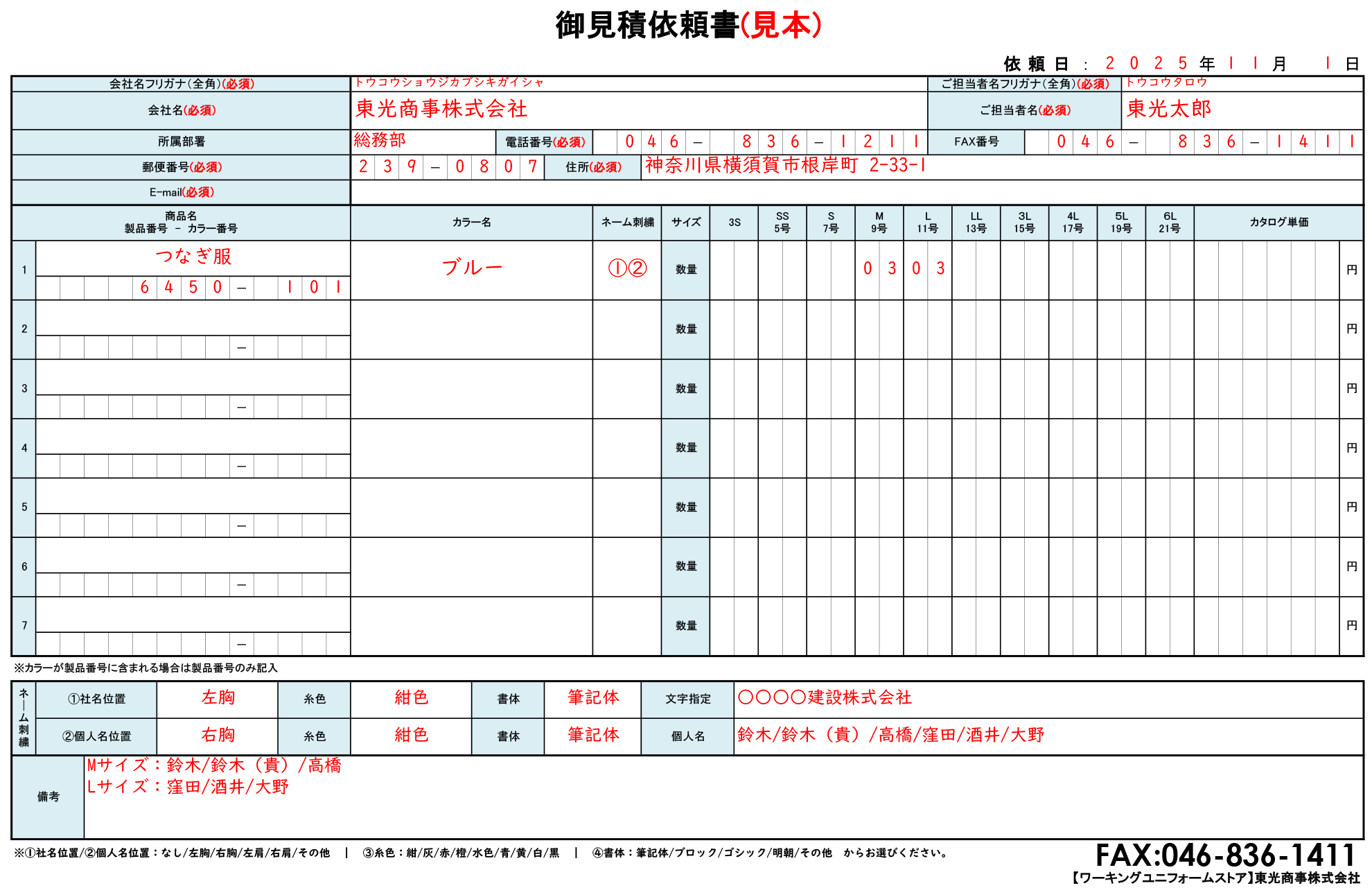 下記ボタンよりFAX用御見積依頼書をダウンロードしていただき、